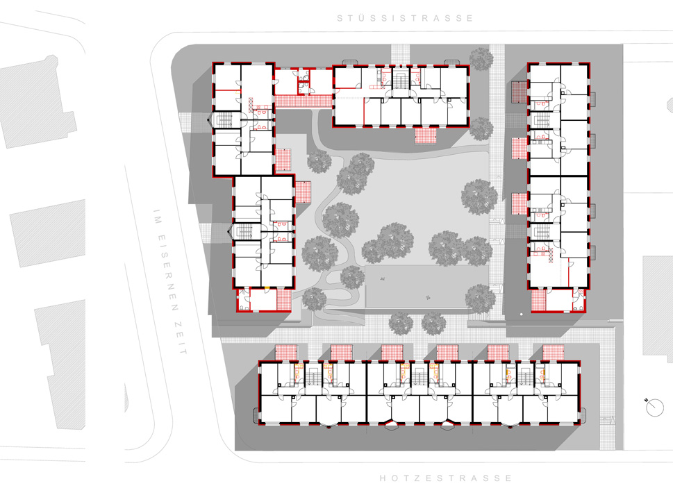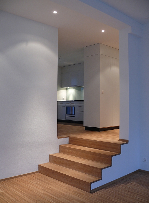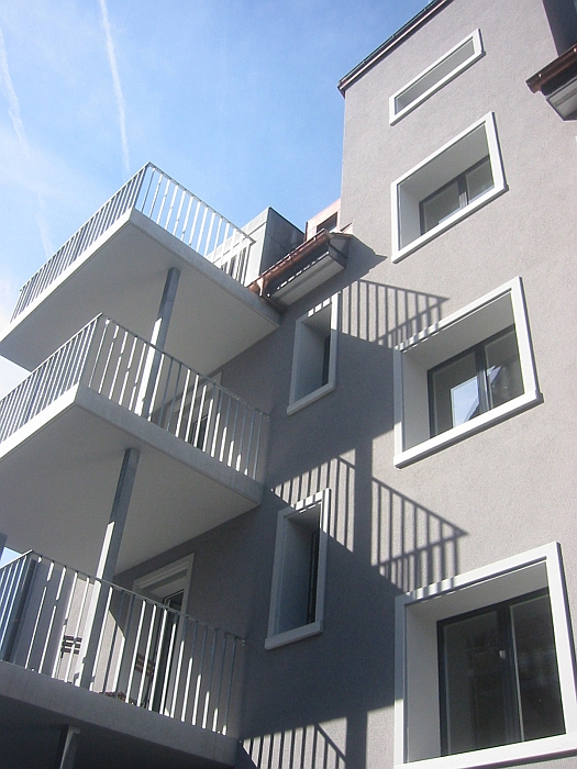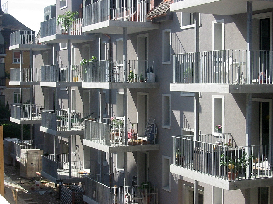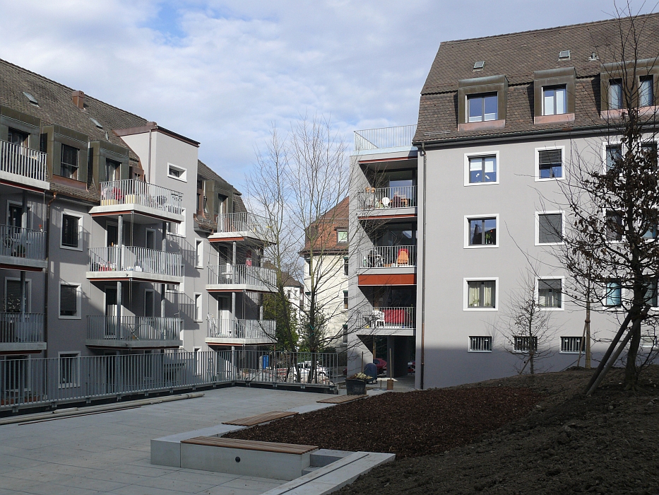 Teilweise Wohnungsvergrösserung durch Anbauten, grosse Balkone zum Innenhof. Neben energetischen Massnahmen wurde auch die Heizanlage neu konzipiert, sämtliche Küchen und Bäder erneuert und die Geschossdecken schalltechnisch verbessert.