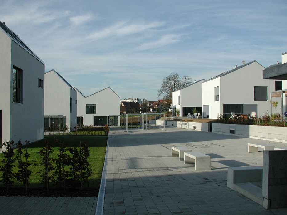 Die Überbauung „In der Lötschenmatt“ umfasst 38 Reiheneinfamilienhäuser und sechs Mehrfamilienhäuser mit insgesamt 42 Wohnungen. Die Siedlung ist in drei Teile gegliedert, die durch einem Fussgänger-Hauptweg miteinander verbunden sind. Die zwei Reiheneinfamilienhaus-Einheiten gruppieren sich um je einen gemeinsamen Platz. Die Mehrfamilienhäuser sind zwischen zwei peripher angeordneten Plätzen ins Gelände eingebettet. Durch die versetzte Lage der Gebäude entstehen unterschiedliche Aussenräume und interessante Ausblicke aus den Wohnungen.